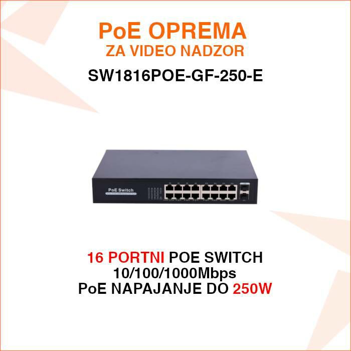 Osim artikla 16 portni PoE switch SW1816POE-GF-250-E, pogledajte i ostalu ponudu PoE opreme.