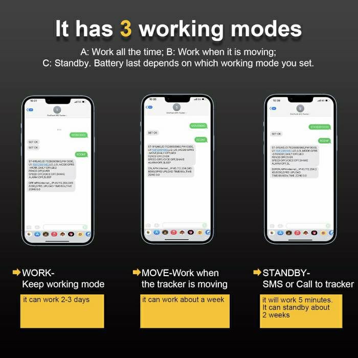 • 3 načina rada: stalno praćenje (šalje lokaciju u određenim vremenskim intervalima), praćenje prilikom kretanja, standby
