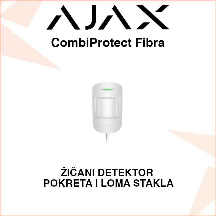Ajax CombiProtect Fibra kombinirani žičani detektor pokreta i loma stakla dizajniran je za unutarnju ugradnju. Uređaj pomaže u sprječavanju neovlaštenih upada i oštećenja imovine.