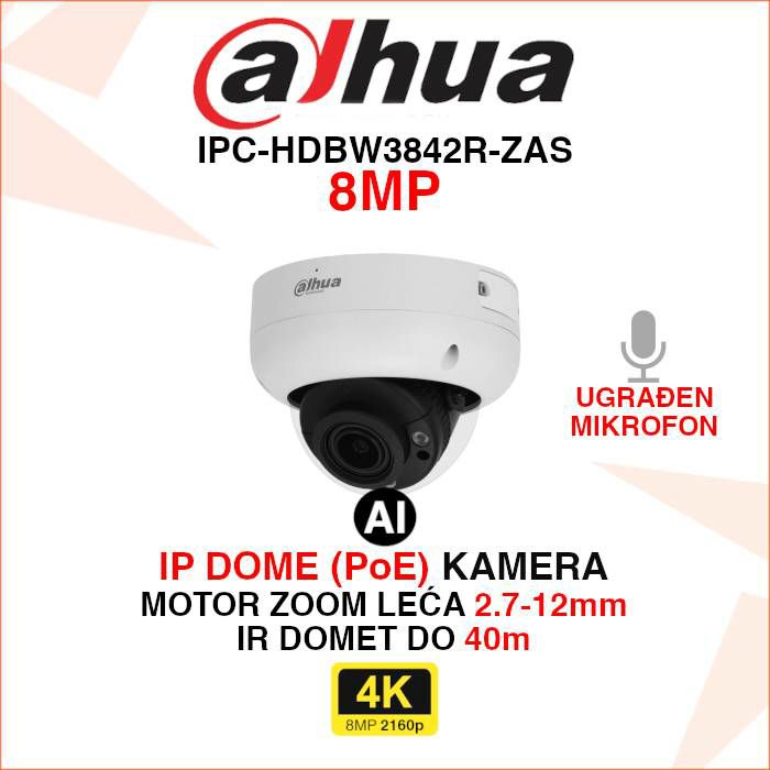 Osim artikla Dahua 4K AI IP kamera IPC-HDBW3842R-ZAS, pogledajte i ostalu ponudu Dahua IP kamera za video nadzor.