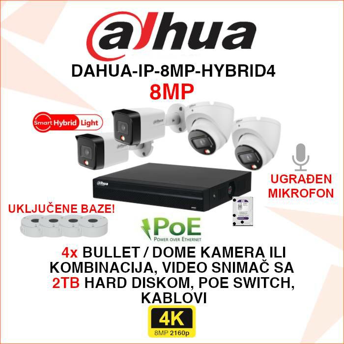 Komplet za video nadzor DAHUA-IP-8MP-HYBRID4 uključuje: