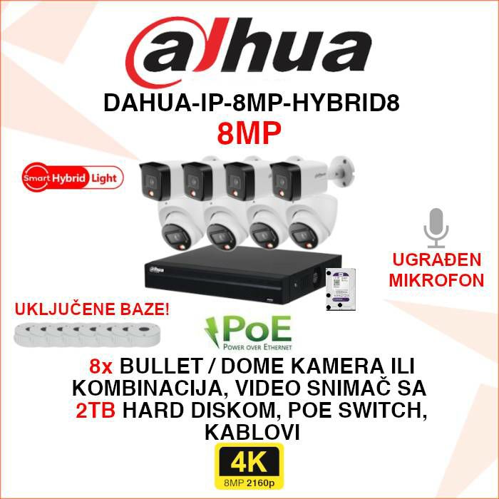 Komplet za video nadzor DAHUA-IP-8MP-HYBRID8 uključuje:
