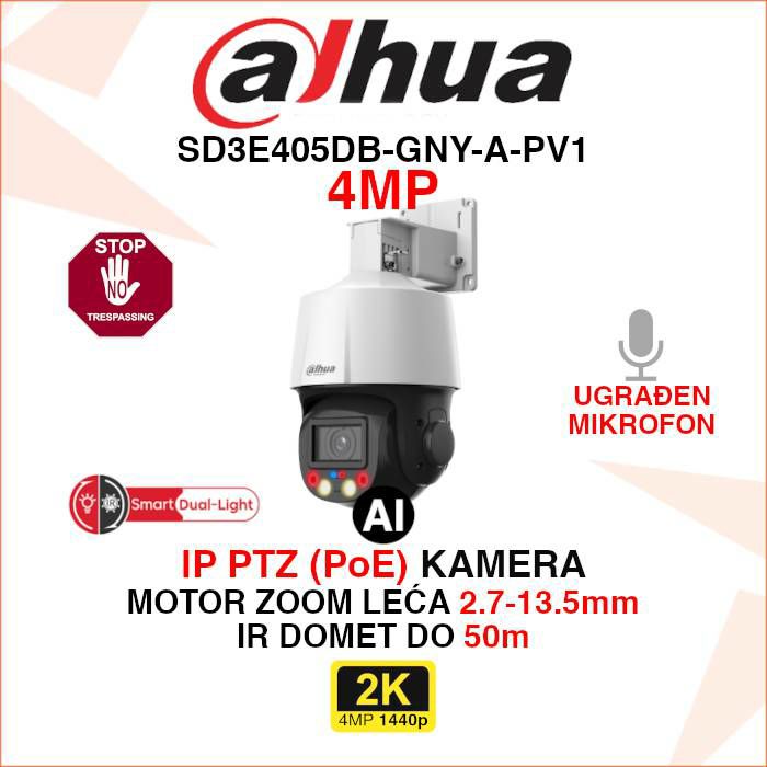 Osim artikla Dahua 4MP Smart Dual Light AI IP kamera SD3E405DB-GNY-A-PV1, pogledajte i ostalu ponudu Dahua IP kamera za video nadzor.