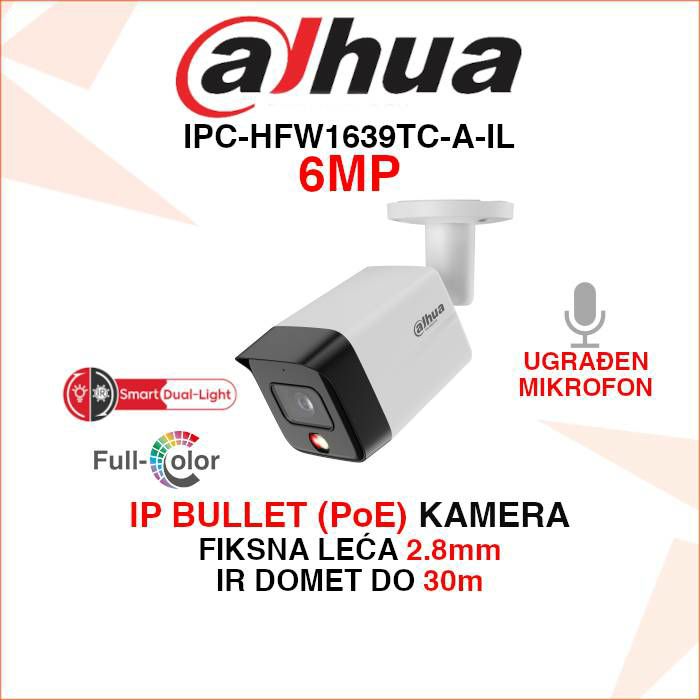 Osim artikla Dahua 6MP Smart Dual Light IP kamera IPC-HFW1639TC-A-IL, pogledajte i ostalu ponudu Dahua IP kamera za video nadzor.