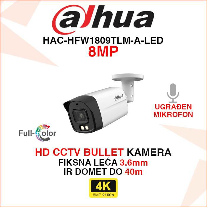 Osim artikla Dahua 4K bullet kamera HAC-HFW1809TLM-A-LED, pogledajte i ostalu ponudu HD analognih kamera za video nadzor.