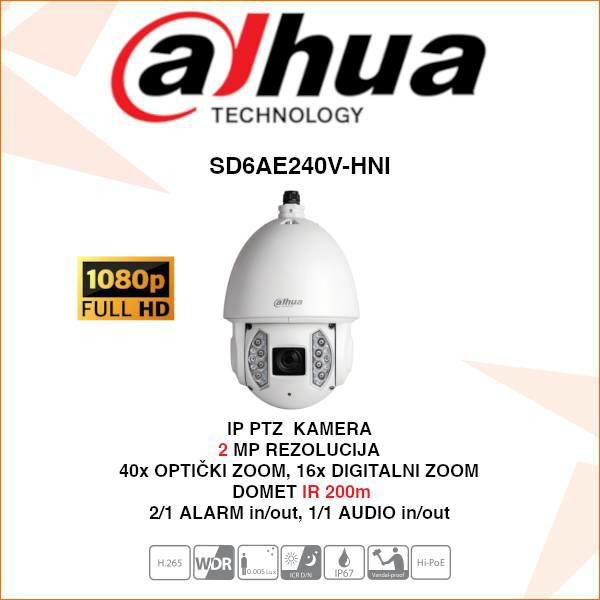 Osim artikla Dahua 2MP Starlight IP PTZ kamera za video nadzor SD6AE240V-HNI, pogledajte ostalu ponudu Dahua IP kamera.