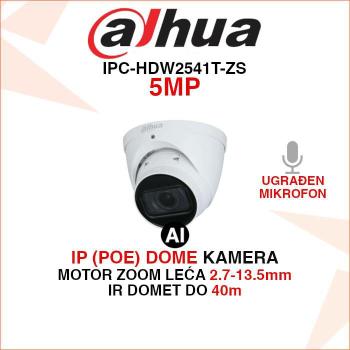 Osim artikla Dahua WizSense IP PoE dome kamera IPC-HDW2541T-ZS, pogledajte ostalu ponudu Dahua IP kamera.