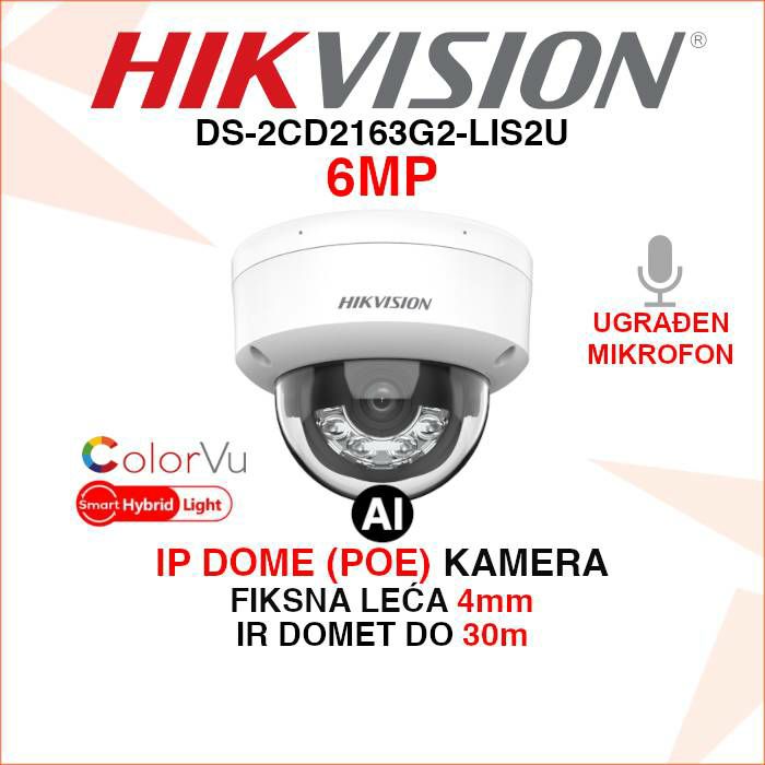 Osim artikla Hikvision 6MP AcuSense Smart Hybrid Light kamera DS-2CD2163G2-LIS2U, pogledajte i ostalu ponudu Hikvision IP kamera za video nadzor.