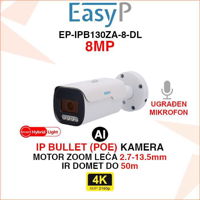 EASY-P 4K IP POE BULLET AI MOTOR ZOOM KAMERA EP-IPB130ZA-8-DL