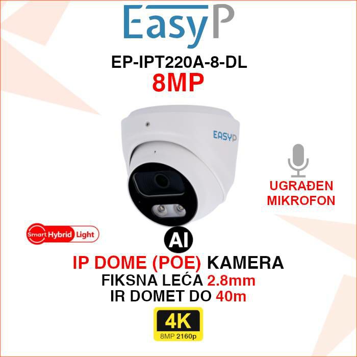 Osim artikla Easy-P 4K IP PoE dome kamera EP-IPT220A-8-DL, pogledajte i ostalu ponudu Easy-P IP kamera za video nadzor.
