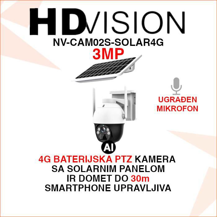 4G ROTACIJSKA KAMERA S HUMAN DETECTION FUNKCIJOM I SOLARNI PANEL