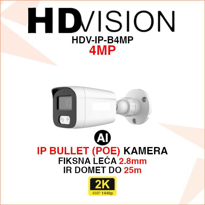 Osim artikla HDVision IP PoE bullet kamera HDV-IP-B4MP, pogledajte i ostalu ponudu HDVision IP kamera za video nadzor.