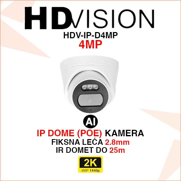 HDVISION 4MP IP POE DOME AI NADZORNA KAMERA HDV-IP-D4MP