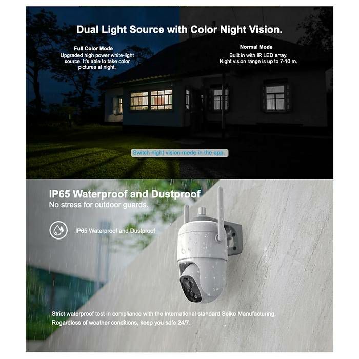 Dolazi s moćnom punjivom baterijom od 9000 mAh i solarnim panelom koji osigurava kontinuirano punjenje. Čak i bez solarnog napajanja, kamera s jednim punjenjem može raditi do 8 mjeseci.