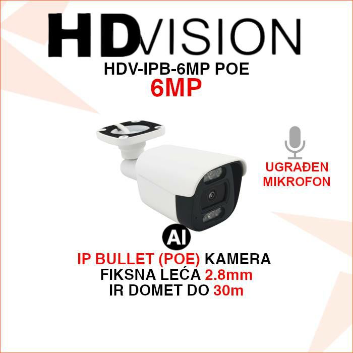 HDVISION IP BULLET 6MP POE KAMERA S AI DETEKCIJOM HDV-IPB-6MP