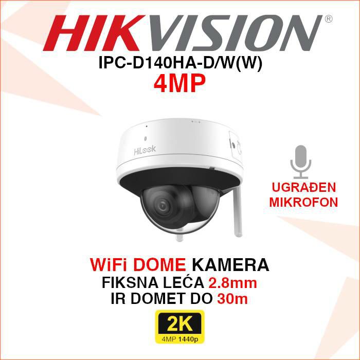 Osim artikla Hikvision bežična WiFi kamera IPC-D140HA-D/W(W), pogledajte i ostalu ponudu bežičnih kamera za video nadzor.