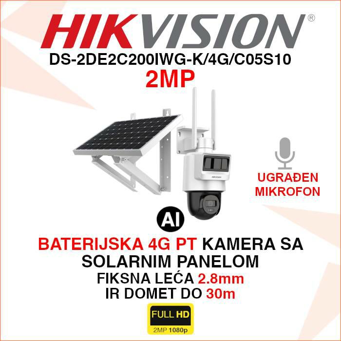 Hikvision DS-2DE2C200IWG-K/4G 2 MP Pro sigurnosna PT kamera na solarni pogon idealna je za vanjski HD nadzor