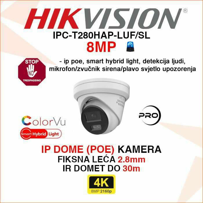 Osim artikla Hikvision Smart Hybrid Light IP kamera IPC-T280HAP-LUF/SL, pogledajte i ostalu ponudu Hikvision IP kamera za video nadzor.