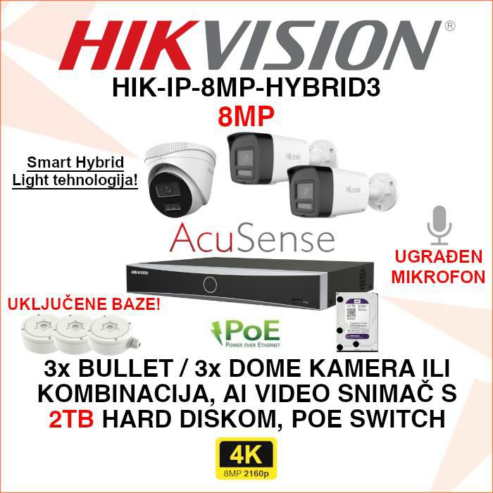 Komplet za video nadzor HIK-IP-8MP-HYBRID3 uključuje: