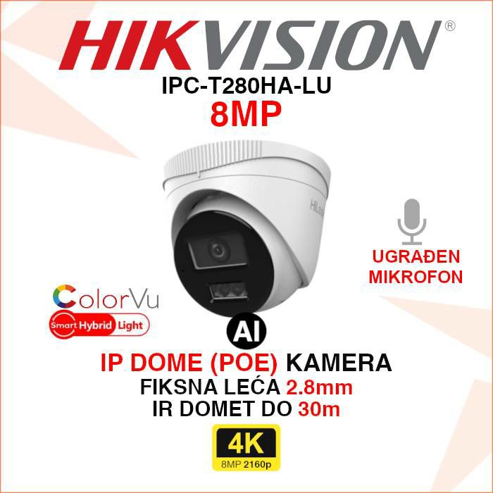HIKVISION 4K SMART HYBRID LIGHT IP POE KAMERA IPC-T280HA-LU