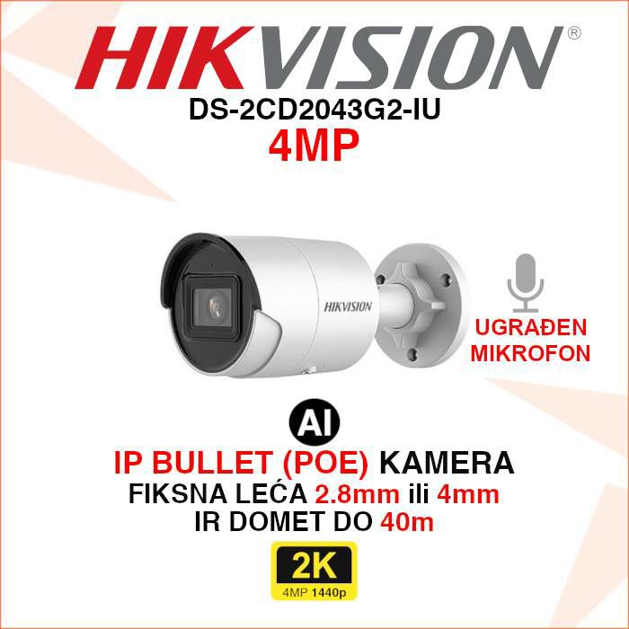 Osim artikla Hikvision 4MP IP PoE kamera DS-2CD2043G2-IU, pogledajte i ostalu ponudu Hikvision IP kamera za video nadzor.