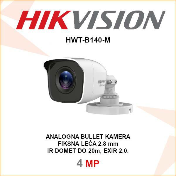 HIKVISION 4MP EXIR BULLET KAMERA S 2.8mm FIKSNOM LEĆOM HWT-B140-M
