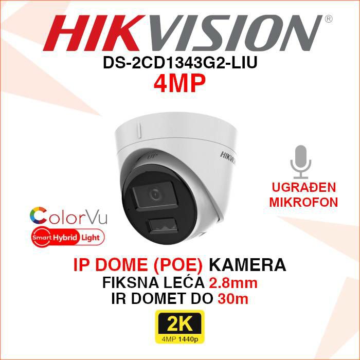 Osim artikla Hikvision 4MP IP PoE Smart Hybrid Light kamera DS-2CD1343G2-LIU, pogledajte i ostalu ponudu Hikvision IP kamera za video nadzor.