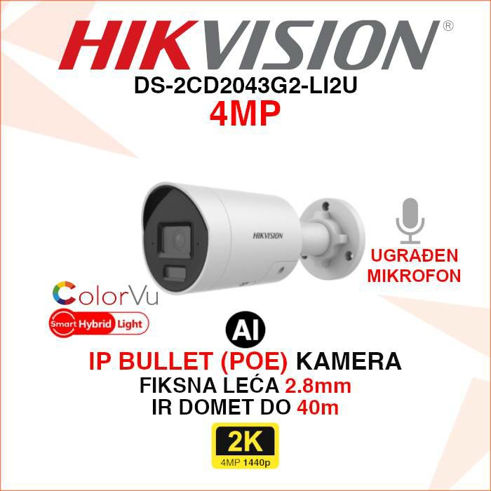 Glavne karakteristike DS-2CD2043G2-LI2U:
