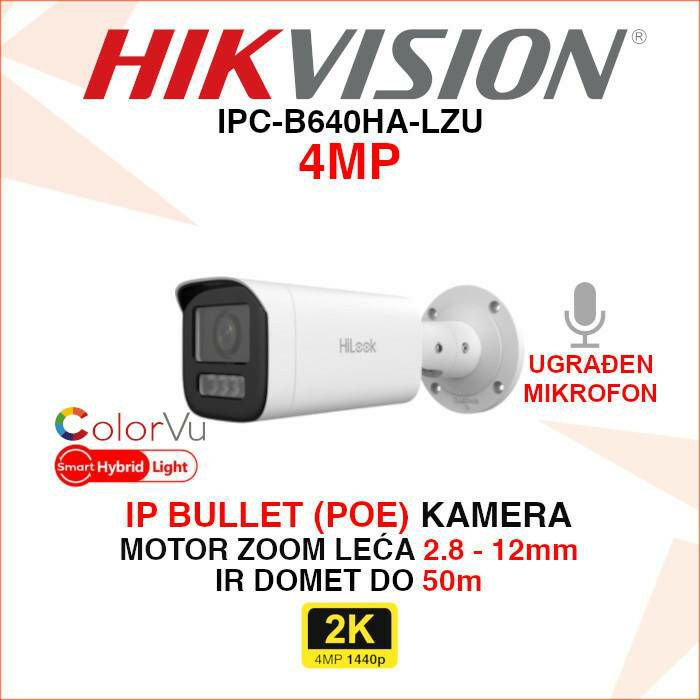 HIKVISION 4MP SMART HYBRID LIGHT MOTOR ZOOM IP KAMERA IPC-B640HA-LZU