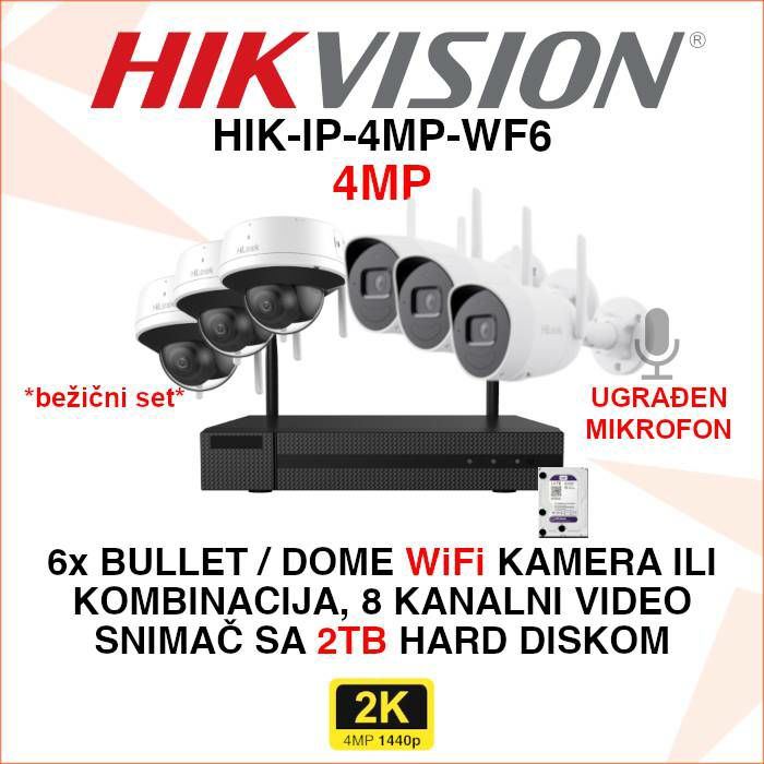 Komplet za video nadzor HIK-IP-4MP-WF6 uključuje: