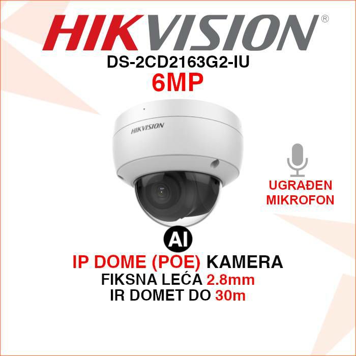Osim artikla Hikvision 6MP AI IP PoE kamera DS-2CD2163G2-IU, pogledajte i ostalu ponudu Hikvision IP kamera za video nadzor.