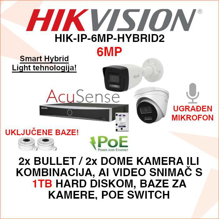 Set za video nadzor HIK-IP-6MP-HYBRID2 uključuje: