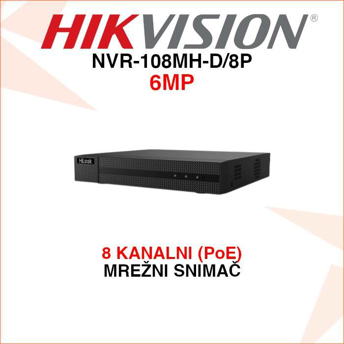 HIKVISION 8 KANALNI 6MP POE MREŽNI VIDEO SNIMAČ NVR-108MH-D/8P