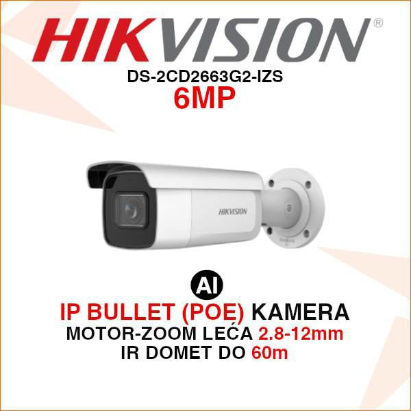 HIKVISION IP BULLET 6MP ACUSENSE MOTOR ZOOM KAMERA DS-2CD2663G2-IZS
