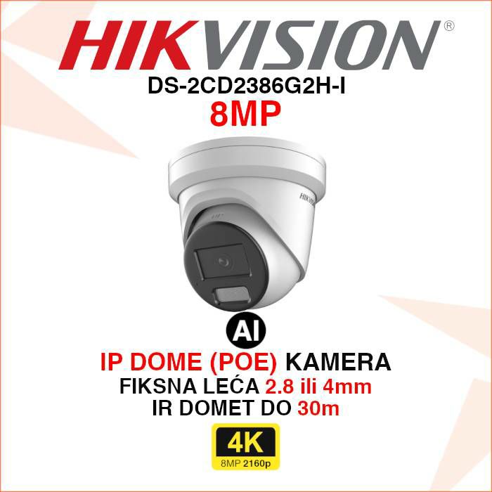Osim artikla Hikvision IP PoE 4K kamera DS-2CD2386G2H-I, pogledajte i ostalu ponudu Hikvision IP kamera za video nadzor.