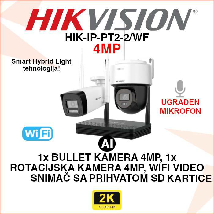HIKVISION WIFI SMART HYBRID LIGHT SET 4MP SA 2 KAMERE HIK-IP-PT2-2/WF