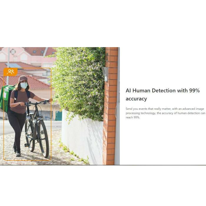 AI detekcija ljudi s 99% točnosti brine da dobivate obavijesti na smartphone uređaj samo za događaje koji su istinski važni. Kod detekcije ljudskog kretanja aktivirat će se sirena jačine 90 dB koja će odvratiti neželjene posjetitelje.