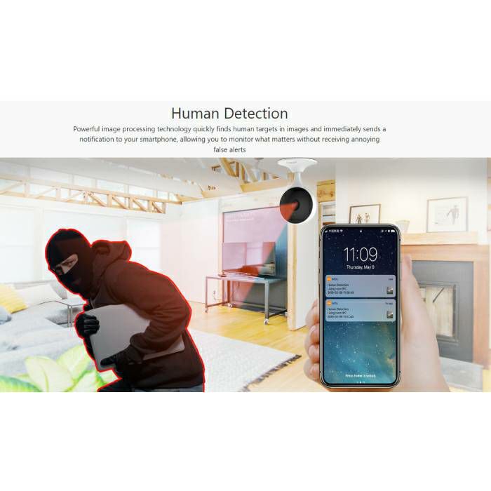 Uz 1080P Full HD snimanje uživo i dvosmjerni zvuk, Imou Cue 2 kamera vam omogucuje da ostanete u kontaktu sa svojom obitelji. Inteligentna detekcija brzo pronalazi ljudske mete u kadru i odmah šalje obavijest na vaš pametni telefon, omogucujuci vam pracenje onoga što je važno bez primanja dosadnih lažnih upozorenja.