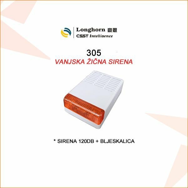 LONGHORN VANJSKA ALARMNA ŽIČNA SIRENA SA BLJESKALICOM 305