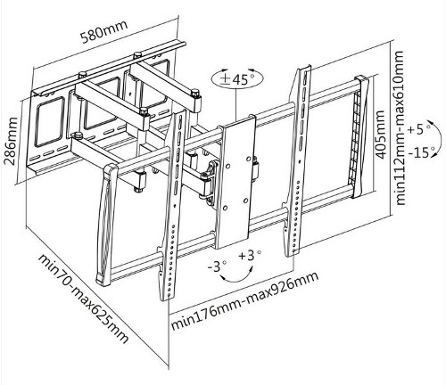 | Model: | Univerzalni zidni nosač nagibno-okretni za LCD velike ekrane, za 60″ do 100″, do 80kg, crni |