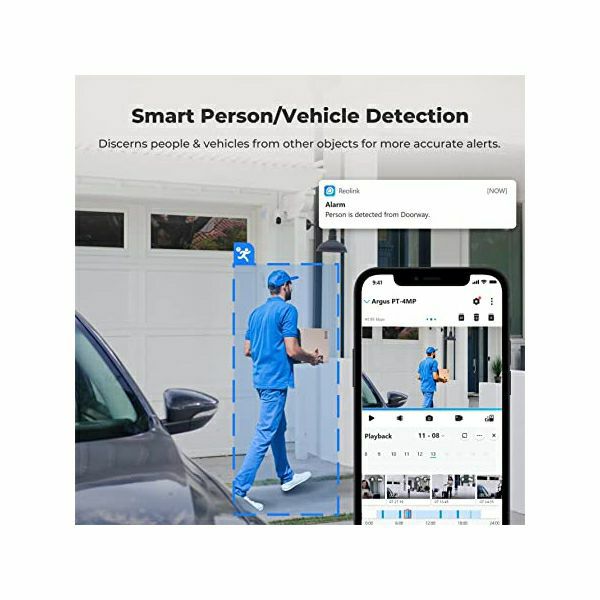 Zavirite u svaki kut štićenog područja uz mogućnost rotacije horizontalno do 355 i vertikalno 140 stupnjeva. Inteligentna detekcija i playback osiguravaju kvalitno filtriranje lažnih alarma. Pomoću napredne AI tehnologije Argus PT razlikuje ljude i vozila od drugih objekata u štićenom području. U slučaju detekcije uljeza šalje push obavijest na smartphone uređaj s fotografijom uljeza.