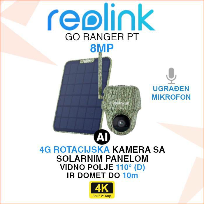 Najnovija baterijska kamera iz Reolink ponude Go Ranger PT ima funkciju pan&tilt i pravu 4K 8MP rezoluciju bez interpolacije. Omogućuje video nadzor uživo u prikazu od 360° i daljinsko preuzimanje 4K videozapisa i slika pohranjenih na microSD kartici (nije uključena).