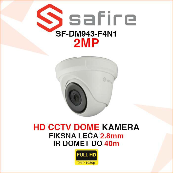 SAFIRE 2MP ANALOGNA DOME KAMERA S FIKSNOM LEĆOM 2.8mm SF-DM943-F4N1