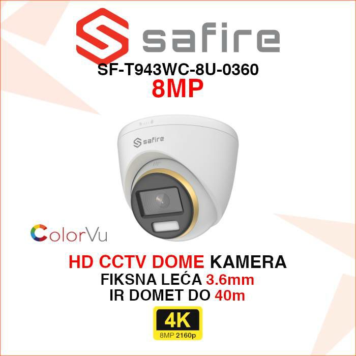 Osim artikla Safire 4K ColorVu dome kamera SF-T943WC-8U-0360, pogledajte ostalu ponudu Safire kamera.