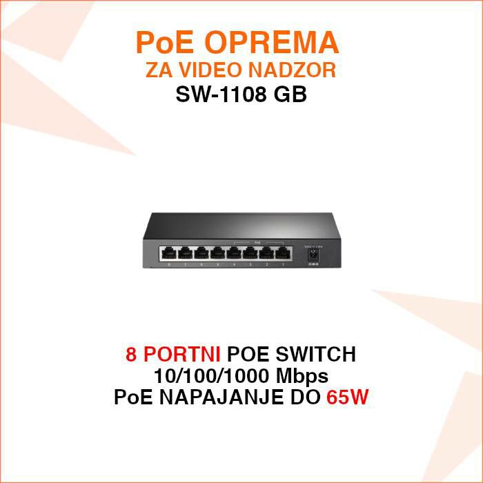 Osim artikla 8 portni gigabitni PoE switch SW-1108 GB, pogledajte i ostalu ponudu PoE opreme za video nadzor.