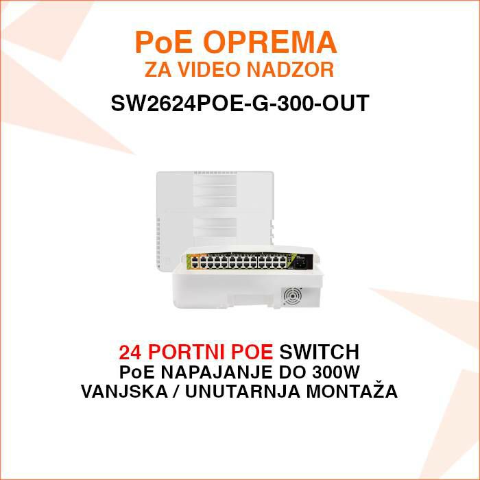 Osim artikla 24 portni PoE switch SW2624POE-G-300-OUT, pogledajte i ostalu ponudu PoE opreme.